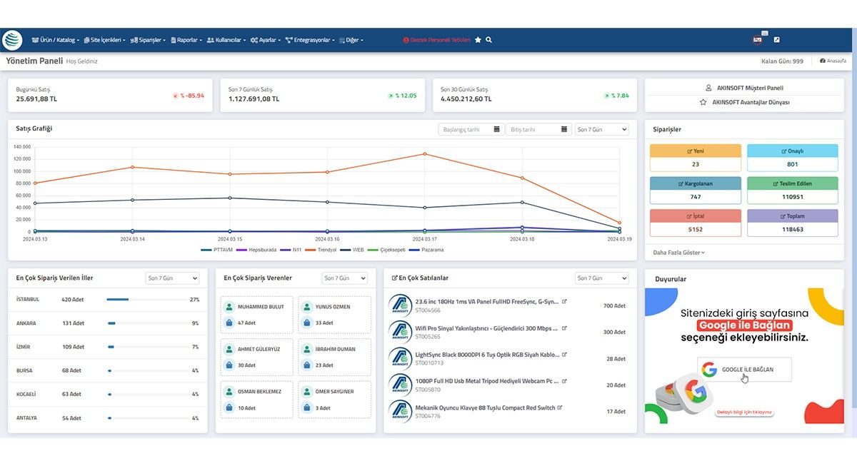 - E-Ticaret programındaki siparişleri ERP programına direkt fatura olarak kayıt edebilirsiniz.