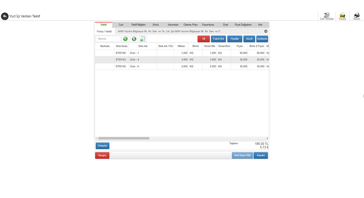 - E-Teklif modülü yardımı ile tedarikçilerinizden hızlı bir şekilde teklif toplayabilir,