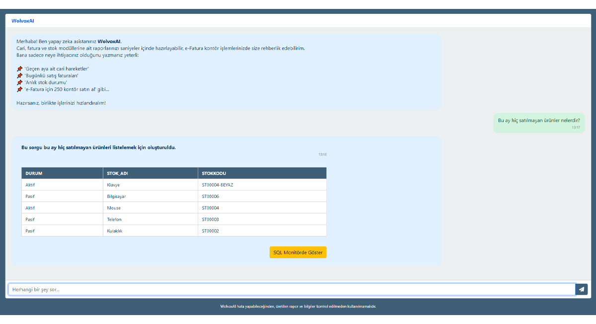 - Raporlama süreçlerini kolaylaştıran yapay zeka destekli WolvoxAI Rapor Asistanı ile raporlarınızı daha hızlı, akıllı ve pratik şekilde oluşturabilir,