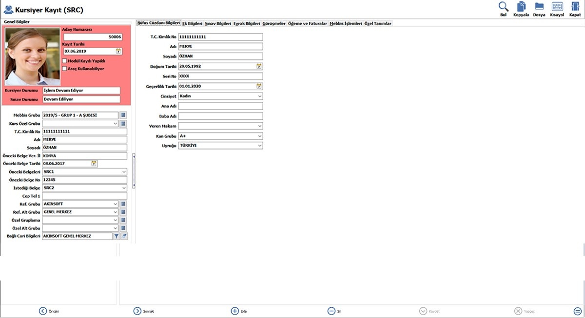 - Araç ve imtihan güzergah kayıtlarını girebilir,
