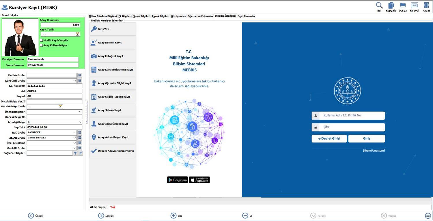 - MTSK, Operatörlük ve SRC kurs takibi yapılabilir,
